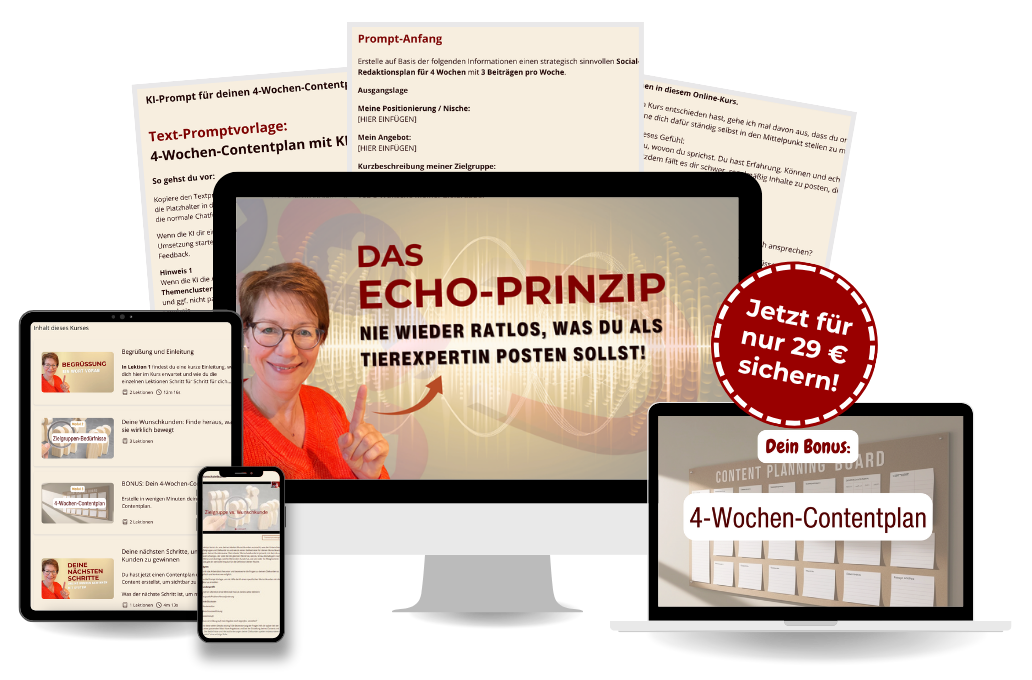 Hör auf zu raten und finde heraus, was deine Wunschkunden wirklich denken, fühlen und wollen. Mit dem Echo-Prinzip lernst du, wie du mit KI tiefer gehst, echte Insights gewinnst und daraus Inhalte entwickelst, die nicht generisch wirken, sondern relevant.